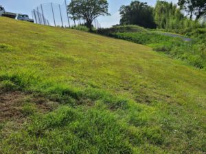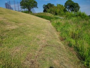 現場は県内の河川敷、芝生の植えられた斜面が作業範囲でした!